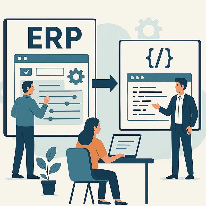 Our technical team sets up the system. We configure all the built-in modules (like your charts of accounts, pricing rules, or hospital wards) to match your blueprint. We then develop any customizations (see our philosophy below) to handle your unique needs.